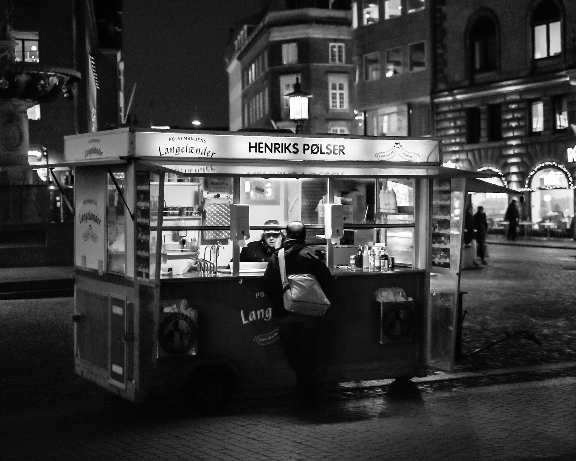 Eine Langzeitbelichtung bei Nacht vom Wasserschloss in Hamburg